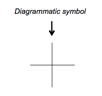 The Diagrammatic symbol is the shape of the pattern, in other words the design on the floor the feet would make if they were wet with paint